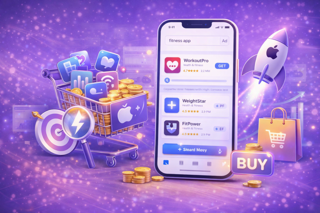 Apple Search Ads are paid advertisements that appear at the top of App Store search results. These ads help apps reach users who are actively searching for apps in a specific category, making them one of the most effective channels for acquiring high-intent users.